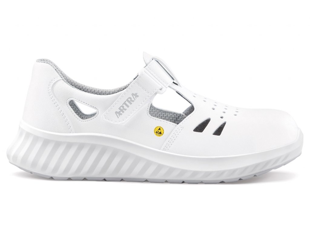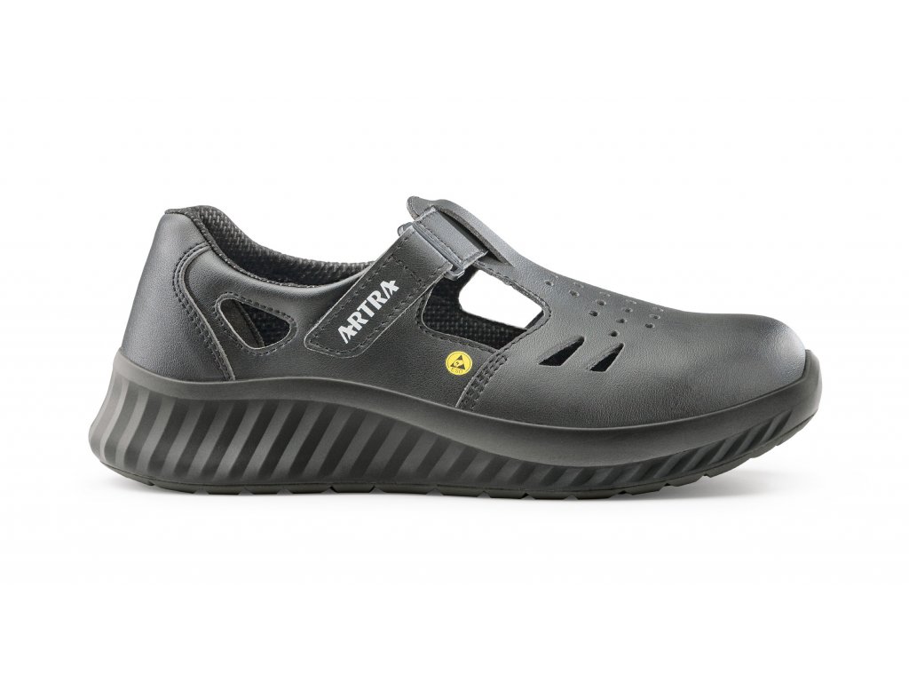 Bezpečnostní sandál S1 SRC ESD s ocelovou špičkou.Materiál na bázi mikrovlákna,textilní podšívka s antibakteriální úpravou. Lehká,pohodlná obuv ,vhodná do elektrotechnických provozů,laboratoří apod.Nová podešev RAPTOR,výborně tlumí rázy při chůzi.
